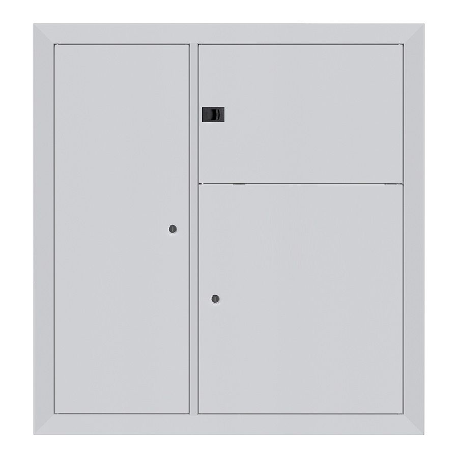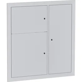 ID: 247Накладка щита этажного ЩЭ на 1-12 квартир (счетчиков) 2-дверный без окошек со слаботочным отсеком справа (1000x950x30) IP31 УХЛ3 из листовой стали RAL7035. Две двери без ревизионного окошка, с замком. Защита IP31, УХЛ3 исполнение, толщина 0,8 мм, долговечность 25 лет, гарантия 36 месяцев. Замена фасада обеспечивает скорость, сбережения, непрерывность функционала. Выгоды: простота без демонтажа, минимальные затраты, подгонка проемов, аккуратный вид, барьер взлому, ассортимент покрытий, прочность, для реновации, не мешает эксплуатации, надежная безопасность.