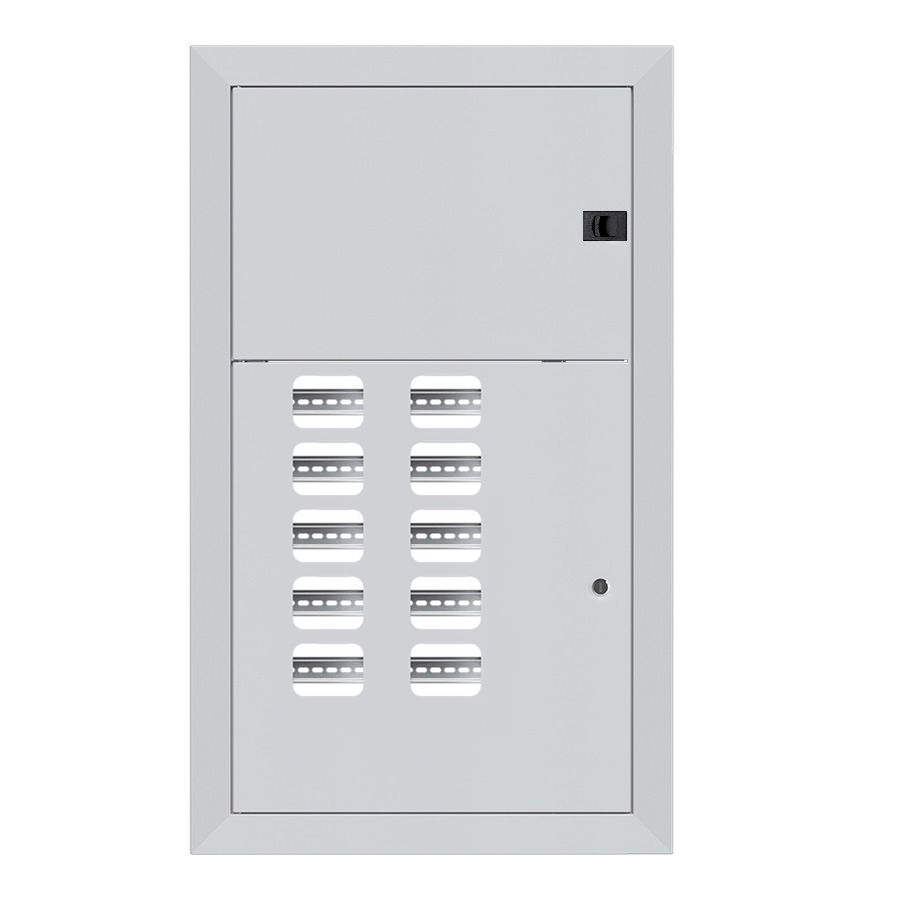 ID: 246Накладка щита этажного ЩЭ-10 на 10 квартир (счетчиков) 2-дверный без слаботочного отсека (1000x580x30) IP31 УХЛ3 произведена из стали серого RAL7035. Две двери с окошком, замком. IP31, УХЛ3, 0,8 мм, 25 лет, гарантия 36 мес. Фасад обновляется быстро, экономно, сохраняя работу щита. Плюсы: монтаж без простоев, дешевизна части, индивидуальные размеры, эстетика скрывает дефекты, защита оборудования, цвета по каталогу, стойкость к повреждениям, подходит для ремонтов, беспрепятственный учет, усиленная охрана.