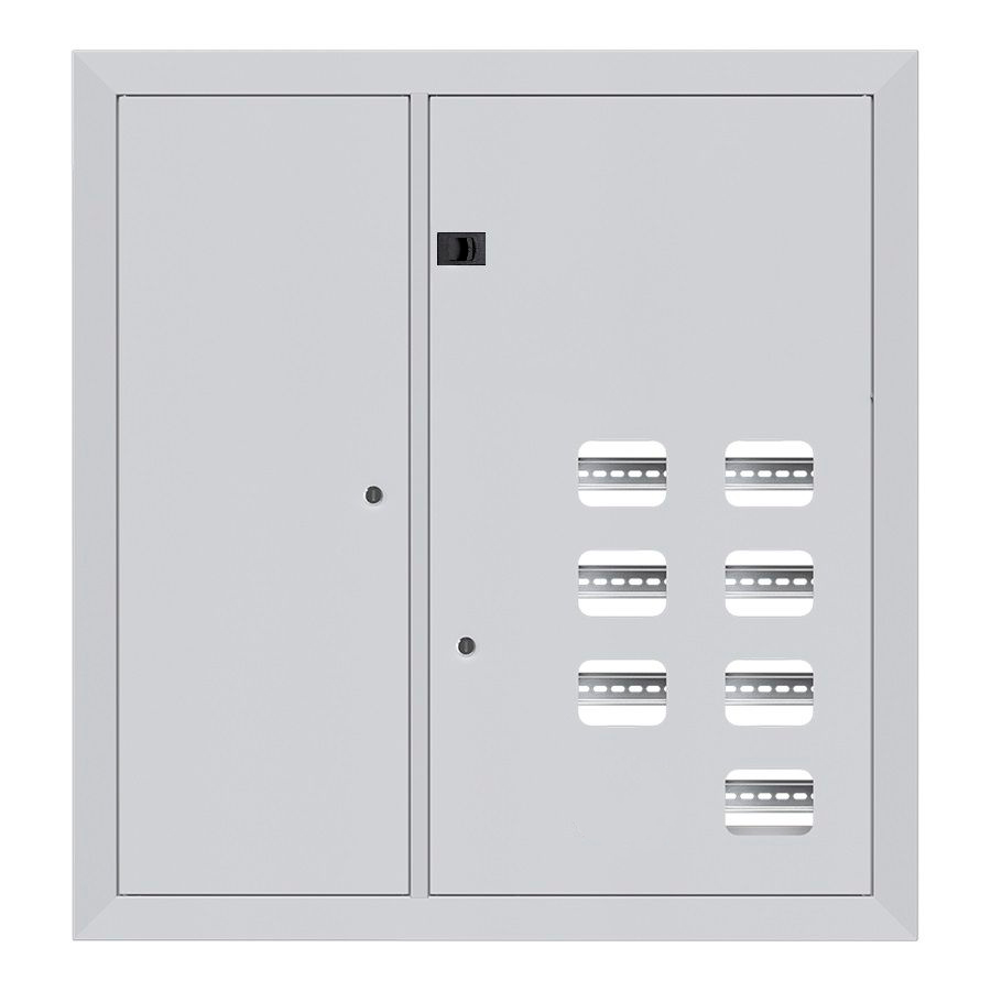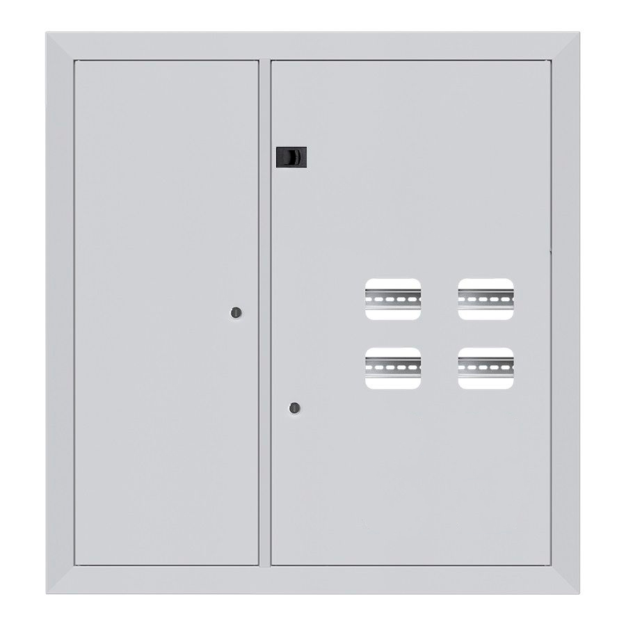 ID: 220Накладка щита этажного ЩЭ-8 на 8 квартир (счетчиков) 2-дверный со слаботочным отсеком слева (1000x950x30) IP31 УХЛ3 из стали серого цвета. Две двери с ревизионным окошком, замок. Защита IP31, климат УХЛ3, толщина 0,8 мм, 25 лет, 36 мес гарантии. Замена фасада обеспечивает скорость, сбережения, непрерывность работы. Выгоды: монтаж без отключения, экономия на фасаде, подгонка ниш, аккуратный вид маскирует износ, барьер вмешательству, опции дизайна, долговечность покрытия, совместимость с ремонтами, удобство эксплуатации, безопасность оборудования.