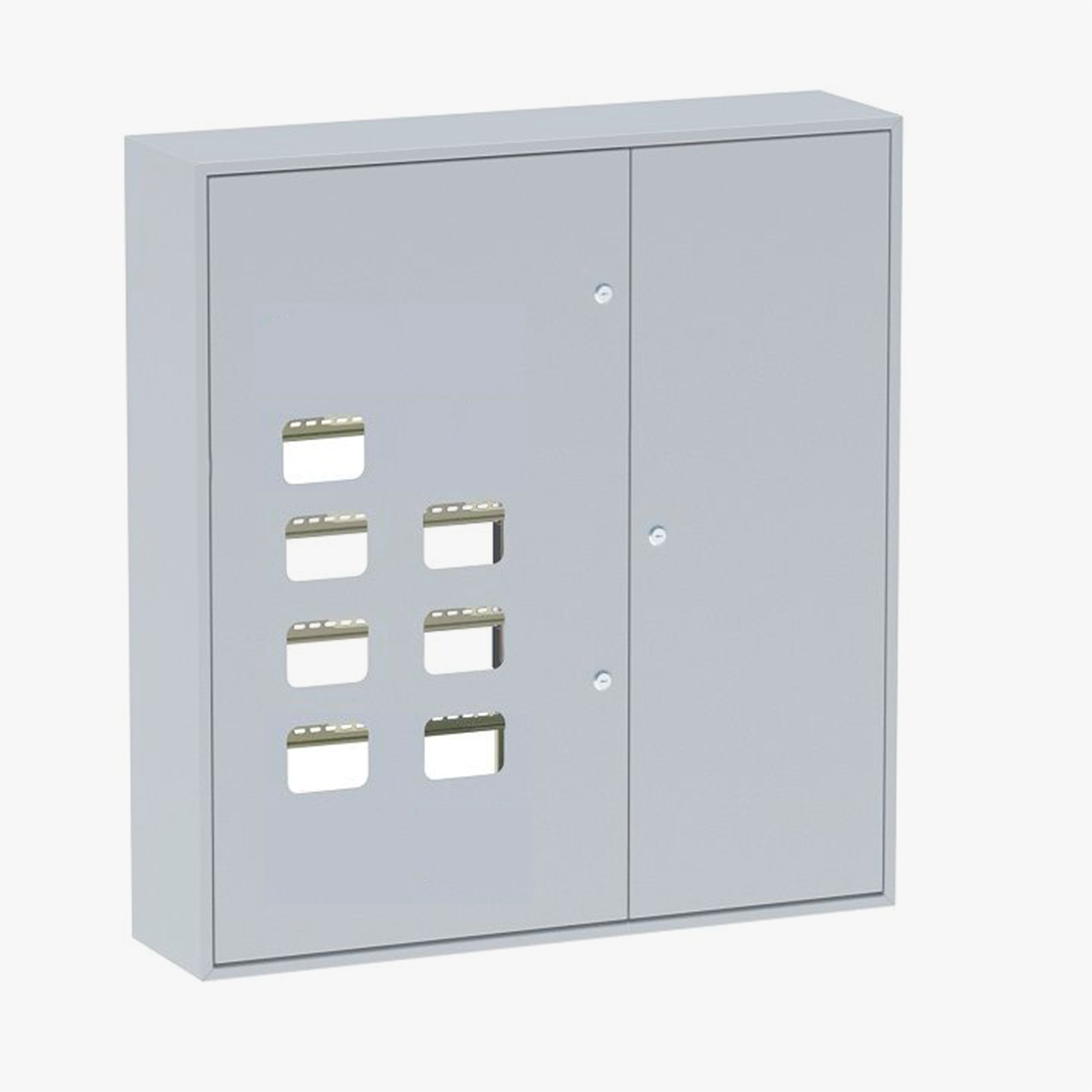 ID: 165Этажный щит ЩЭ-7 на 7 квартир (счетчиков) 2-дверный накладной без слаботочного отсека (1000x580x135) IP31 УХЛ3 предназначен для распределения энергии и учета. Рекомендуется для жилых зданий с семью квартирами. Листовая сталь придает прочность. Порошковое покрытие RAL7035 предотвращает коррозию. IP31 обеспечивает безопасность. Оснащен 2 дверями, ревизионным окошком, замком. Монтаж накладной, толщина 0,8мм. Долговечность 25 лет, гарантия 3 года. Соответствует нормам ТУ.